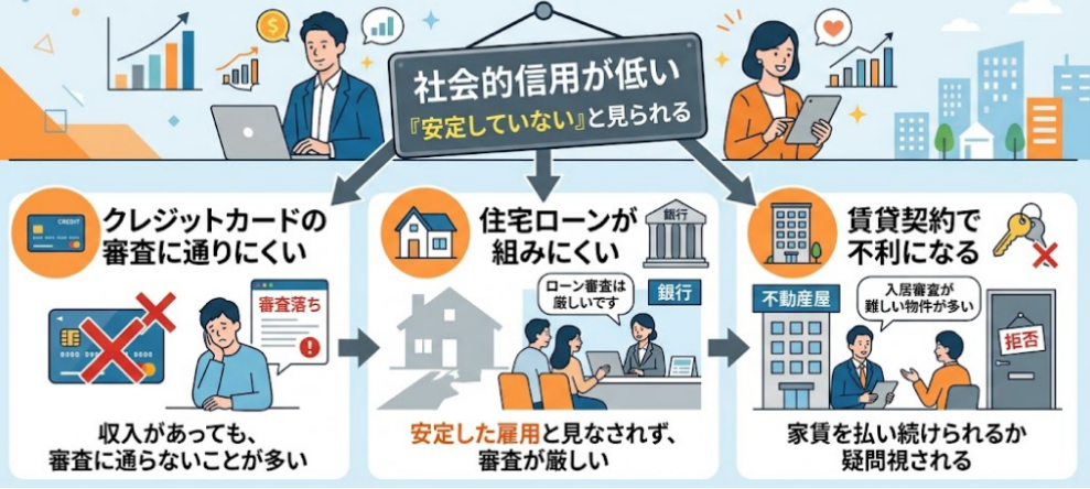 意外に多くの人は知りませんが、社会的な信用がないのも悪い点。