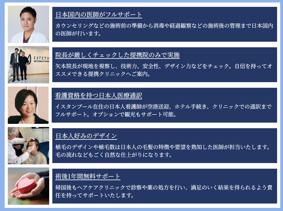 とくにトルコ植毛では、いかにリスク防止してくれるクリニックかは重要なポイント。