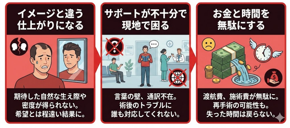 トルコ植毛は海外での手術ですし、どんなトラブルが起こるかわかりません。