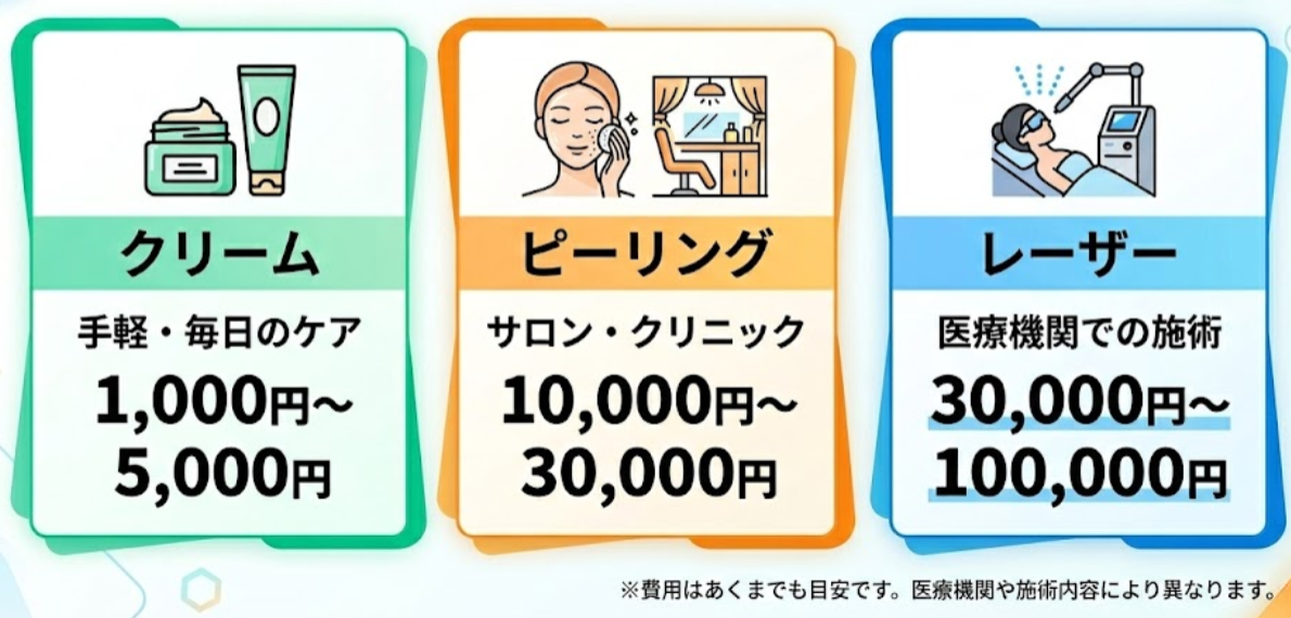 一方で【ピーリング】や【レーザー治療】だと以下のようなデメリットがあります。
