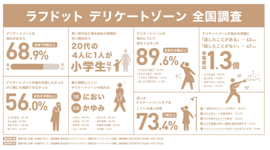 実は7割以上の女性がデリケートゾーンについて、何かしらの悩みを抱えていると言われています。