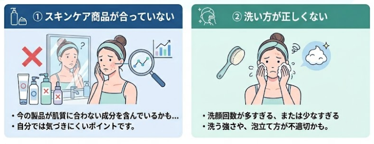実際に肌荒れはさまざまな要素が関係していて、自分だけでの判断は困難です。