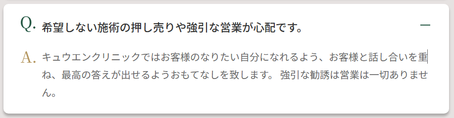 「強引な勧誘がない」と公言しているところもあるので、心配ならそういったクリニックを選びましょう。