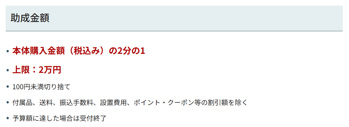 予算がなくなり次第終了なので、早めの購入をおすすめします。(※現在予算あり)
