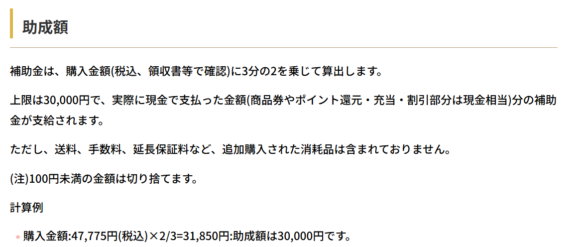 千代田区では購入額の3分の2(最大3万円)の助成金が出ます。