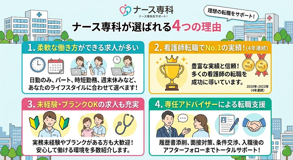 実績についても、なんと看護師業界で転職した人が4年連続No1!
