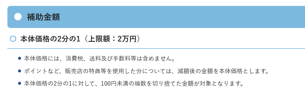 東大和市では購入額の2分の1(最大2万円)の助成金が出ます。