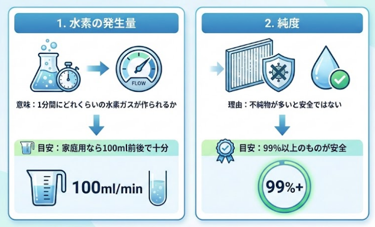 水素吸入器を選ぶときに確認すべきなのは、水素の発生量と純度です。