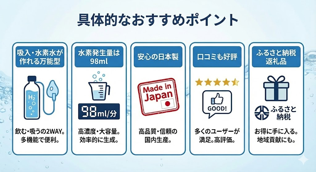 「水素吸入器を選ぶうえで重要なポイント」は以下の3つです。