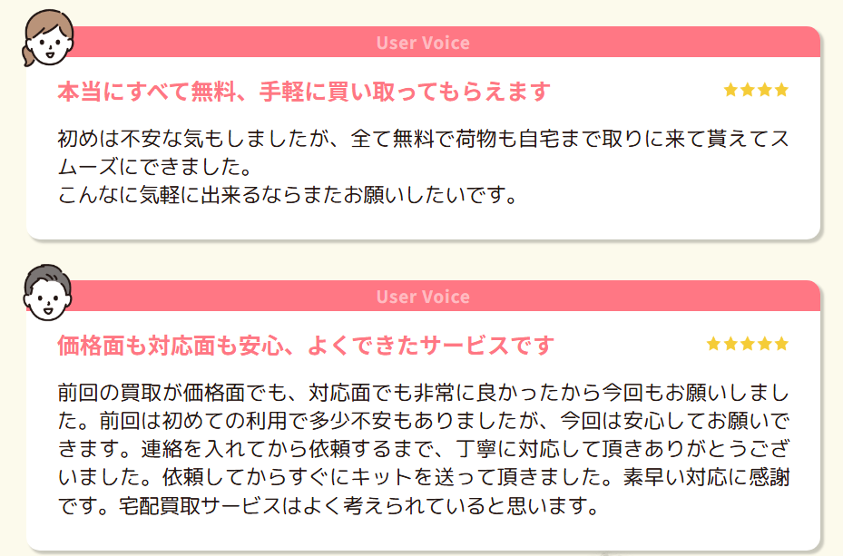 出張買取にも対応していて、今まで50万点以上も査定した圧倒的な実績があるからです。