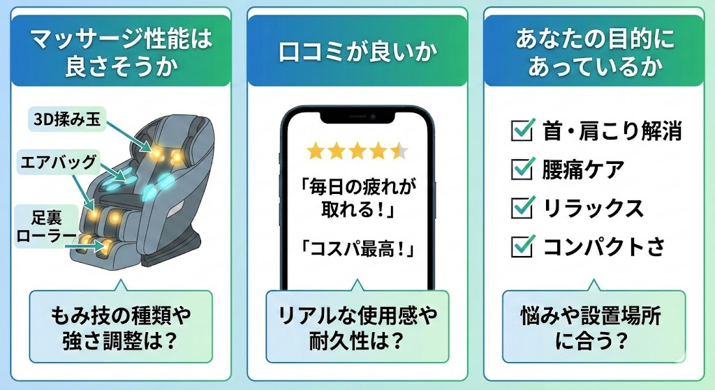 マッサージチェアで後悔しないために重視すべきポイント