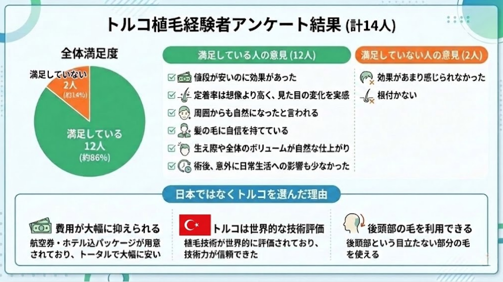 実際、世界中から多くの人がトルコで植毛をしていて成功例も豊富にあります。