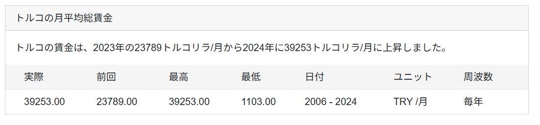 トルコの友人に聞いたところ、平均給与は日本円で11~12万円ほどだそう。